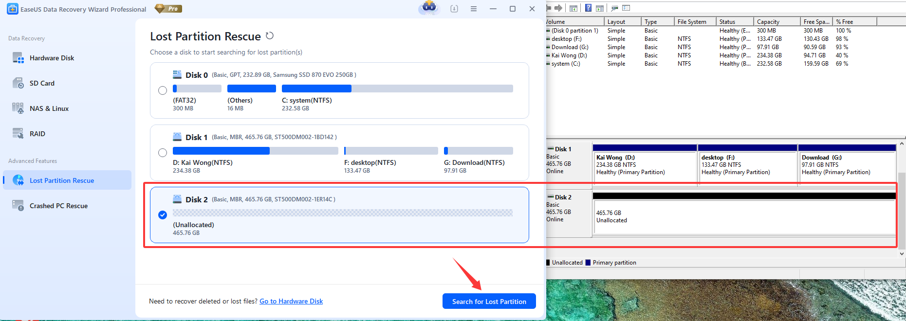 You can use the Lost Partition Rescue or Hardware Disk option in the software to recover your lost partition or files in the following two scenarios: