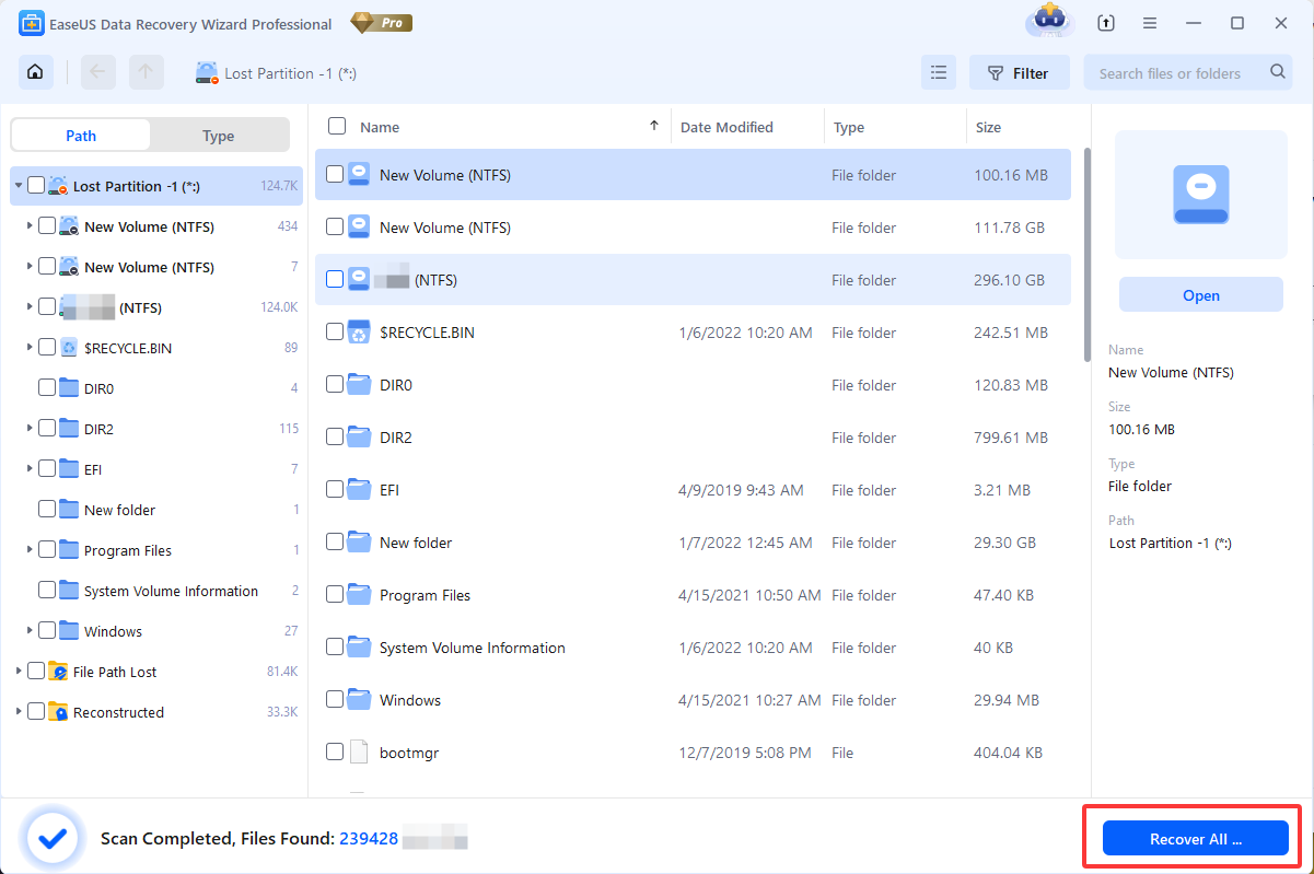 Once the scan is complete, the software will list all recoverable partitions. Simply select the one you wish to restore.