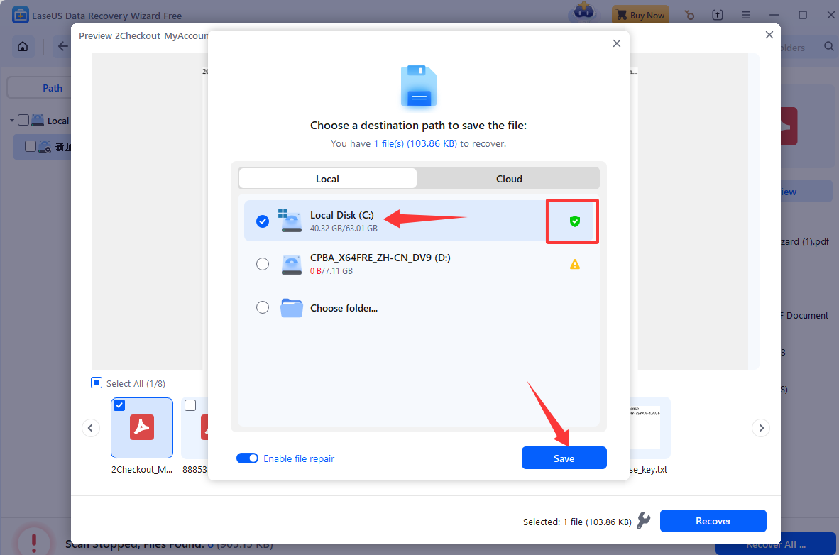 To recover files from the RAW drive using EaseUS Data Recovery Wizard:
