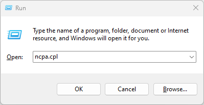 - Type ncpa.cpl → Click OK