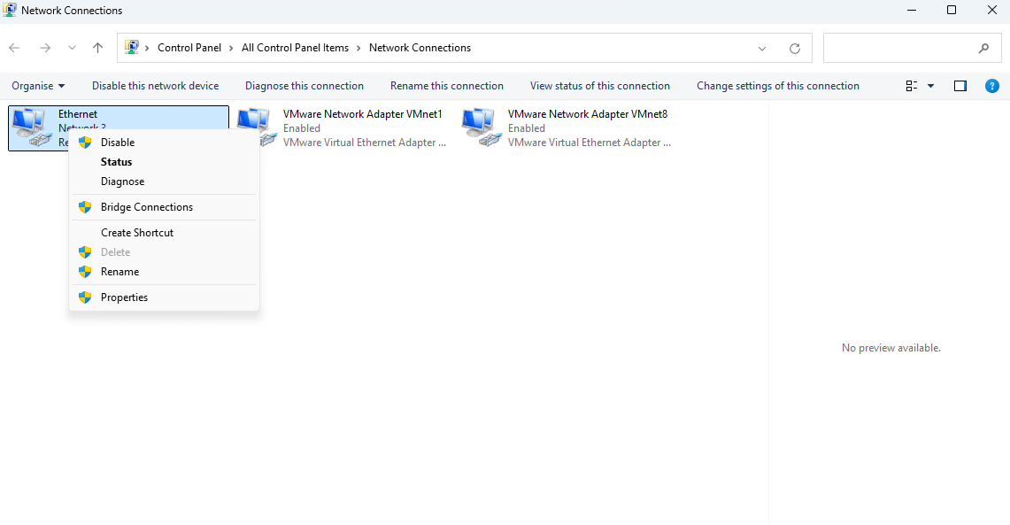 - Right-click your active connection (Wi-Fi/Ethernet)