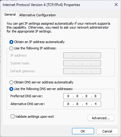 Alternate DNS: 8.8.4.4