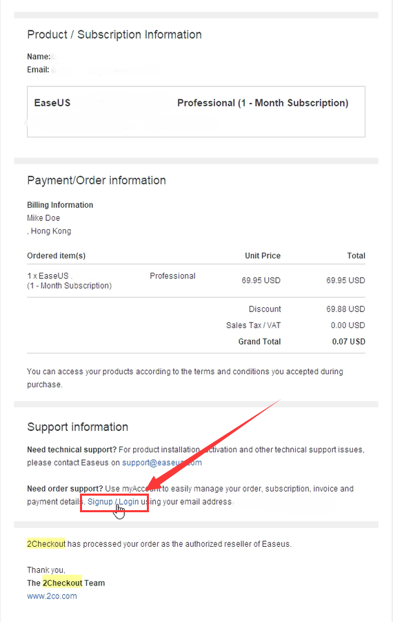 2Checkout is one of the main vendors cooperated with EaseUS. When you placed an order from EaseUS Online shop, the process of purchase and subscription will be handled by 2Checkout.