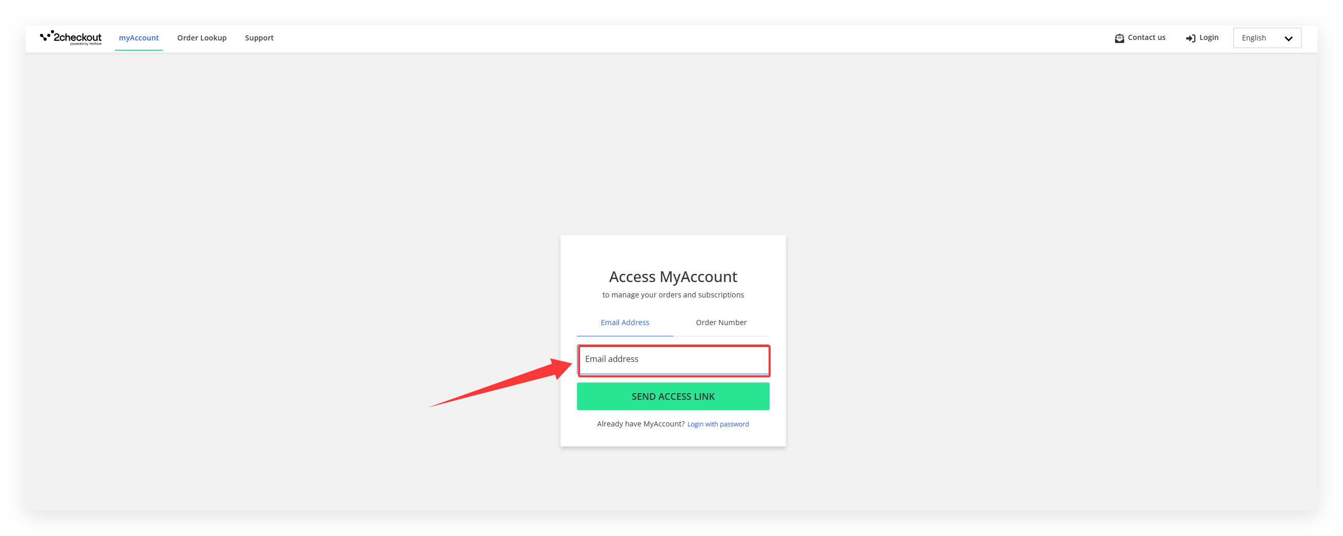Step 1. Click HERE to access 2Checkout Customer Area. You can also find the Login portal in the confirmation email sent by 2Checkout Team.